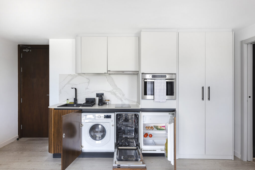 Amb Wi-Fi ràpid, aire condicionat, cuines completament equipades, ascensor i serveis de neteja professional, tindràs tot el que necessites per sentir-te com a casa, just al cor de Barcelona.